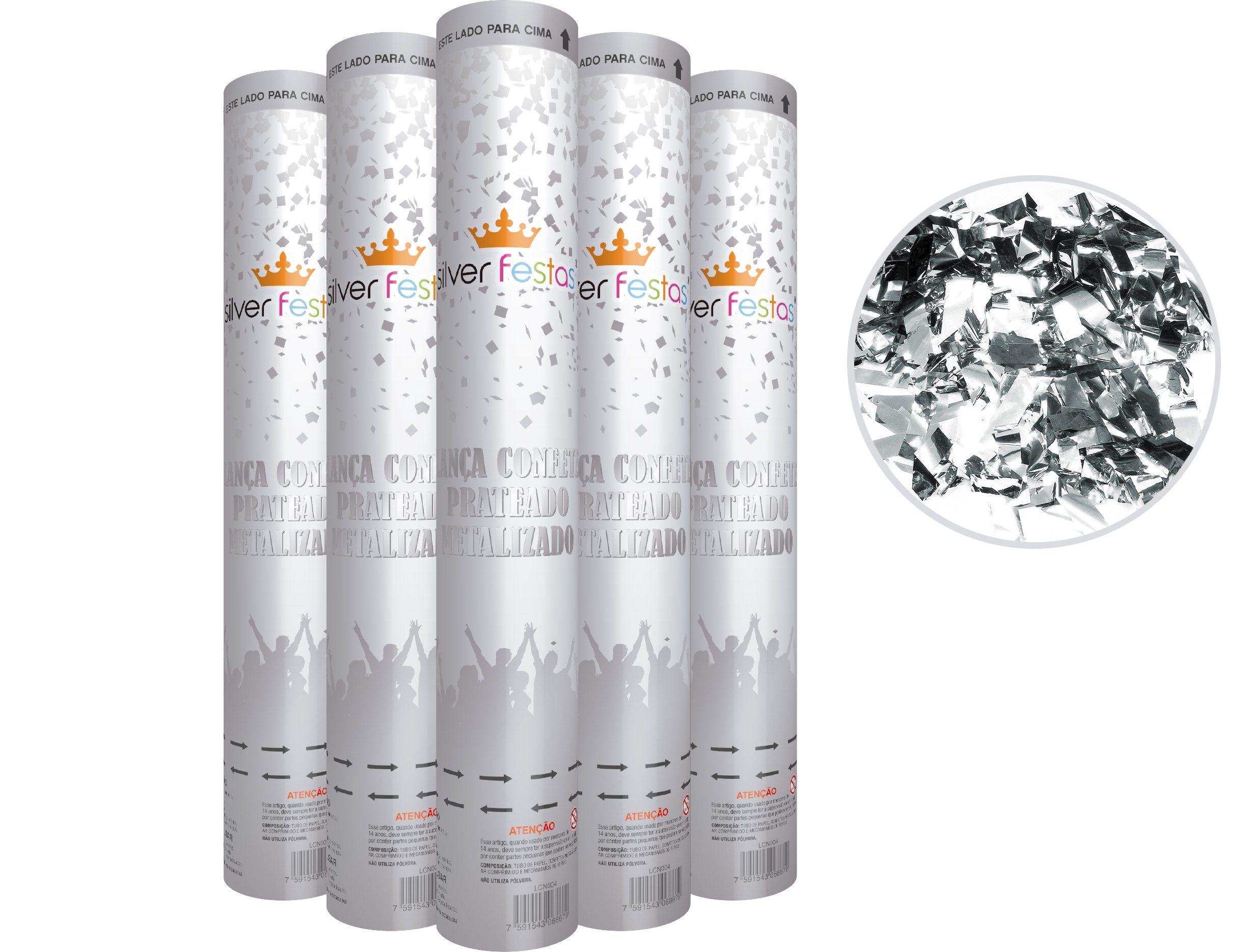 O Lança Confetes Prateado Metalizado 30cm ideal para celebrar momentos especiais em ocasiões e eventos como casamento e festas de aniversário, baladas e mais. Fácil de usar e seguro, é a escolha festiva para uma explosão de alegria.