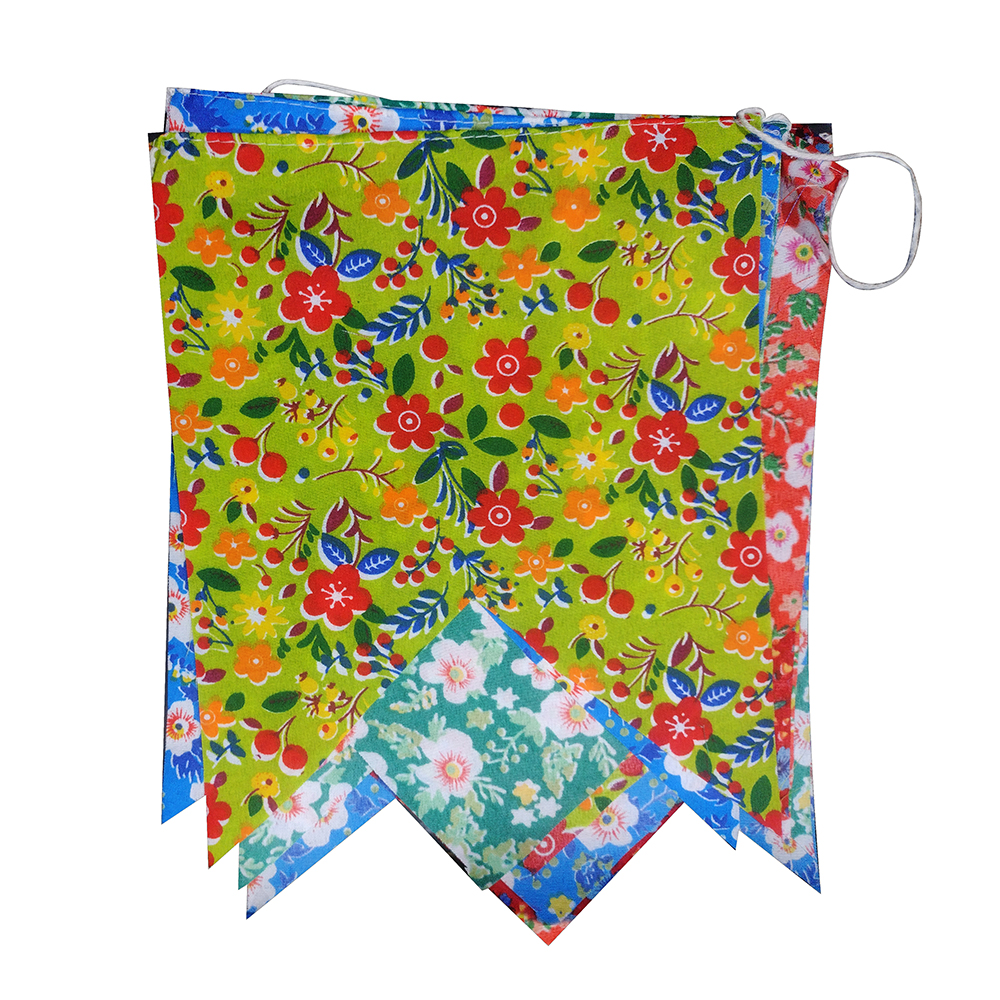 Varal de 5 metros com 11 Banderinhas Grandes em tecido com muito estilo e estampas variadas tipo chita para dar mais estilo a Festa Junina
